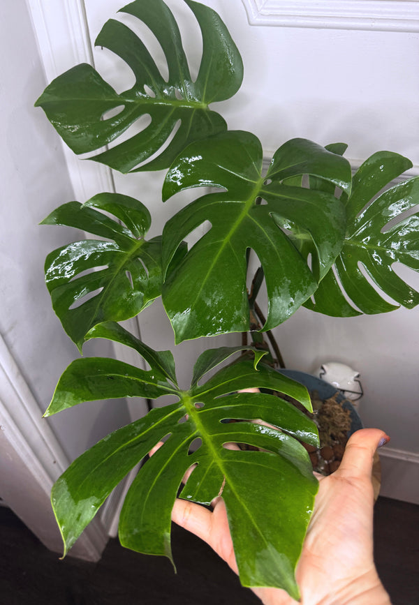 Monstera is a genus of flowering plants native to tropical regions of the Americas. The most well-known species is Monstera deliciosa, commonly known as the Swiss cheese plant due to the distinctive holes and splits in its large, glossy green leaves.